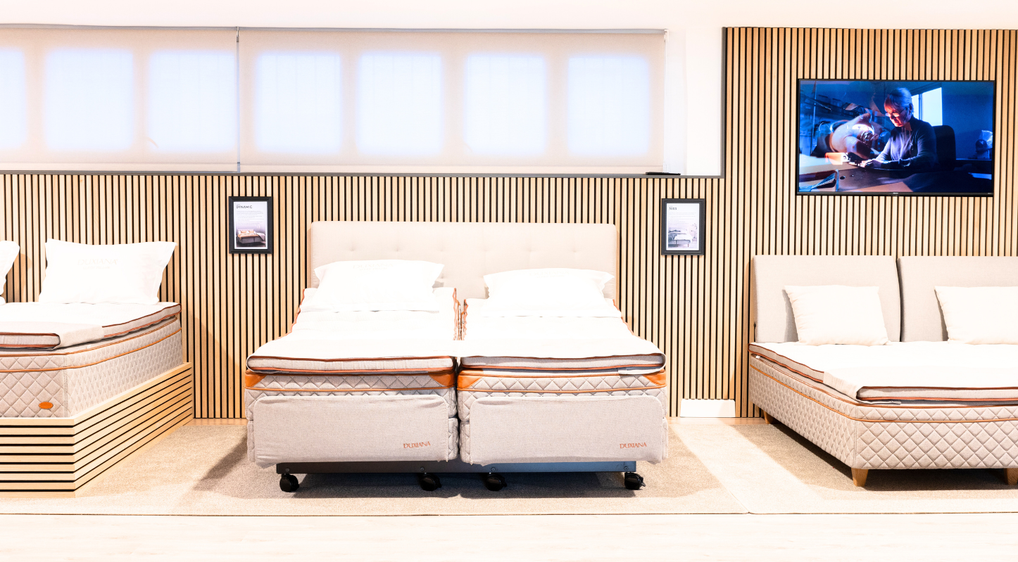 En 1924, Efraim Ljung, fabricante sueco de chocolate, se hospedó en un pequeño hotel de Chicago y quedó fascinado por la comodidad de la cama. Intrigado, usó una pequeña navaja para abrir con cuidado el colchón y descubrir los muelles flexibles en su interior. Este descubrimiento lo llevó a cambiar el enfoque de su negocio, abandonando la confitería para dedicarse a experimentar con muelles de acero de diferentes resistencias y elasticidades. Así nació DUX, y en 1926 Efraim comenzó a fabricar colchones en Malmö.