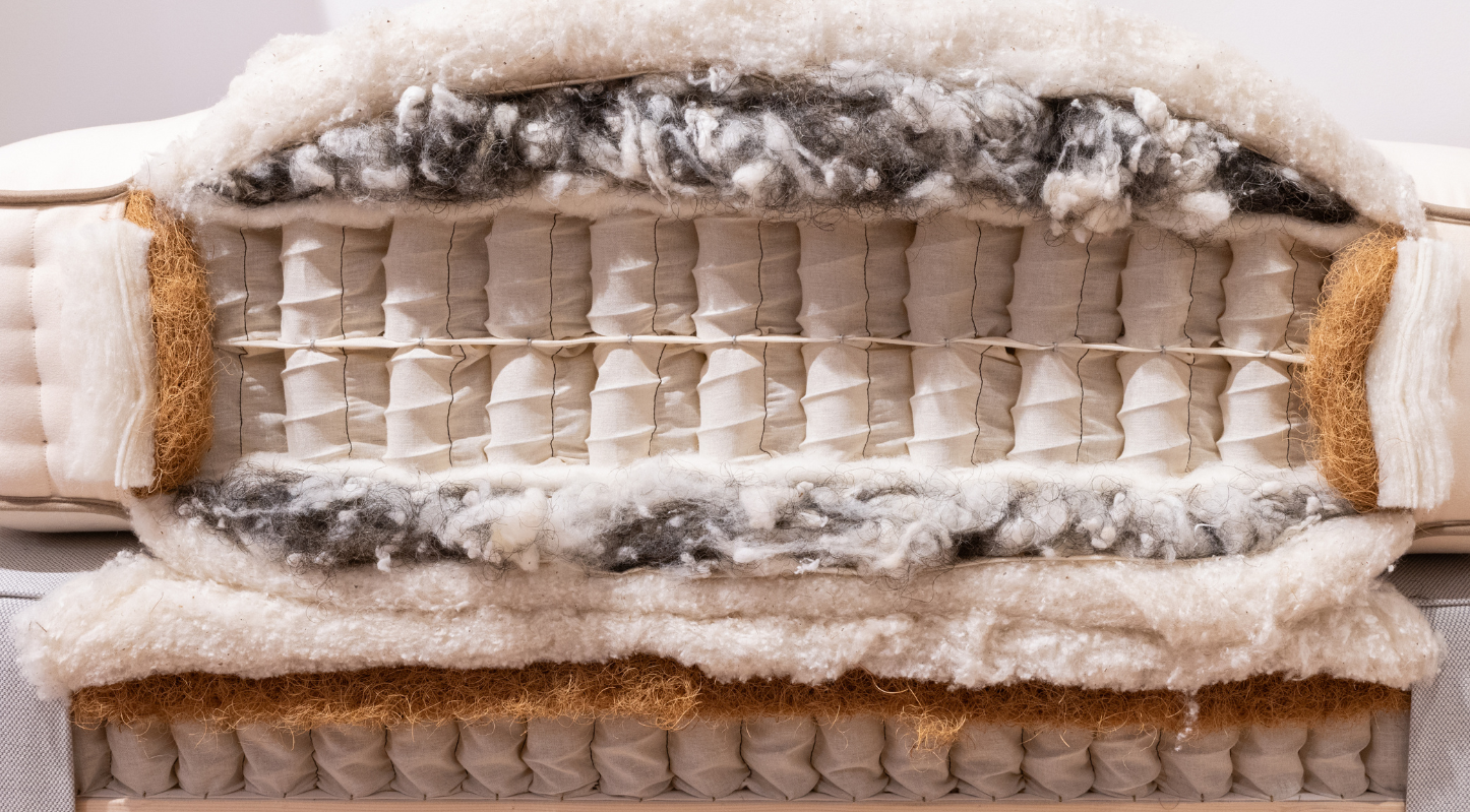 Un colchón hecho a mano con materiales naturales de excepción. Muelles ensacados por Vispring que soportan todos los movimientos e increíbles acabados para una comodidad incomparable.